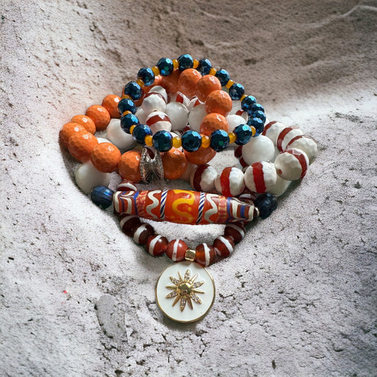 Mediterranean Orange & Blue MOP Hematite 5-Pc Stak Set