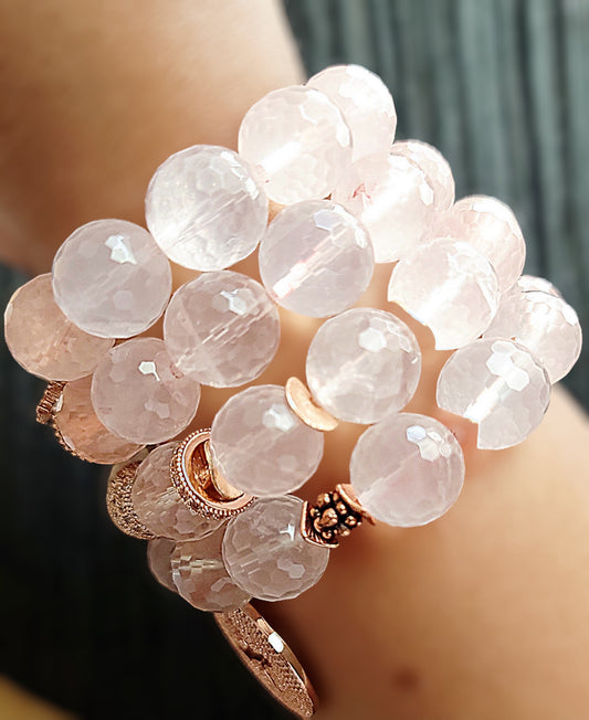 Pink Lemonade & Ice Rose Quartz Rose Gold Pave Stak Set