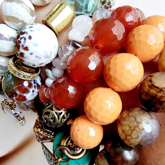 Rain Inspired Chunky Agate Tibetan Focal 5-Strand Statement Stack